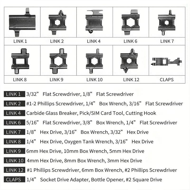 A 29-in-1 multi-tool built into a stainless steel bracelet you wear every day.